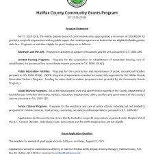 Halifax County is accepting applications for the 2025-2026 funding cycle of the Halifax County Community Grants Program.
