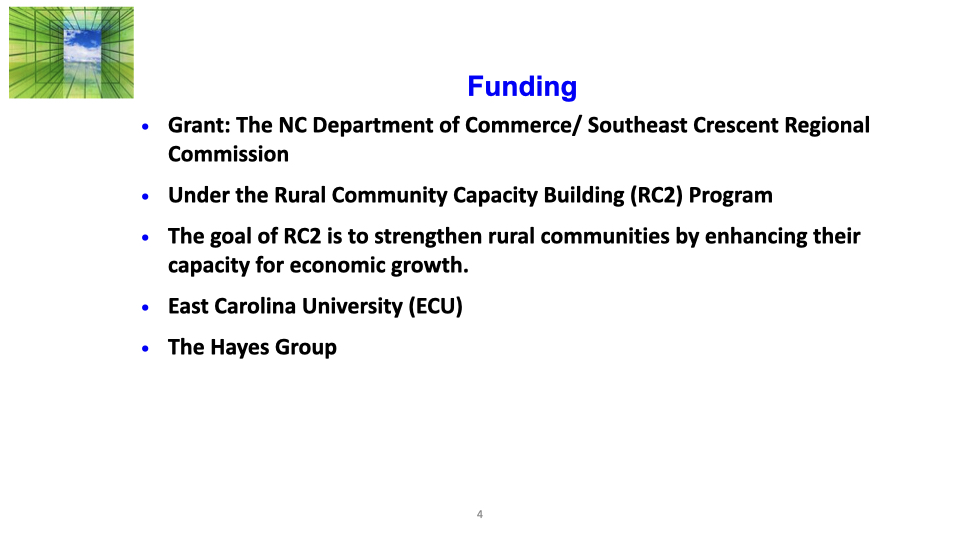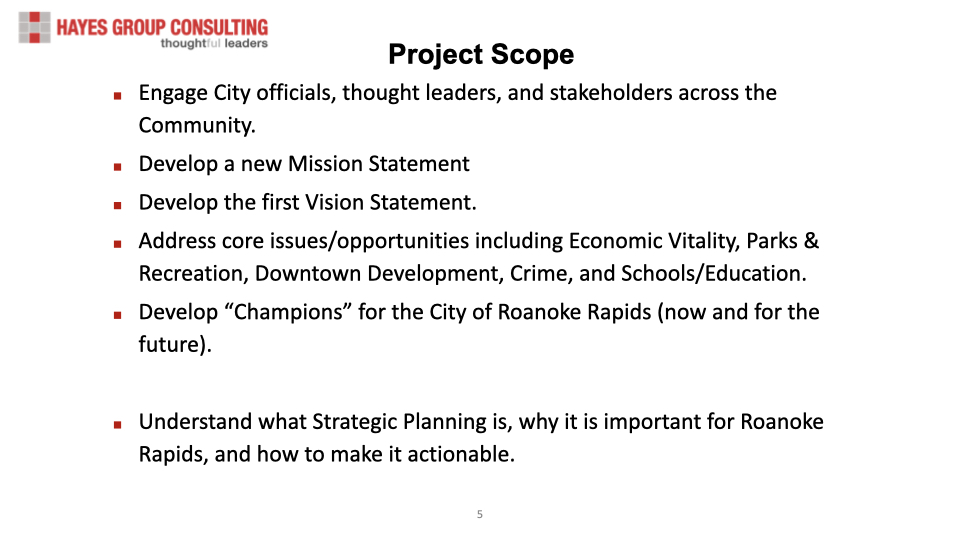 Prepared by the Sanford-based Hayes Group Consulting, the plan was the result of a grant the city received from the North Carolina Department of Commerce and Southeast Crescent Commission through the Rural Community Capacity Building Program.