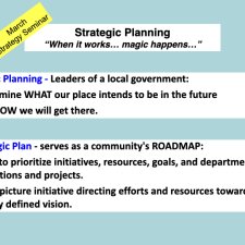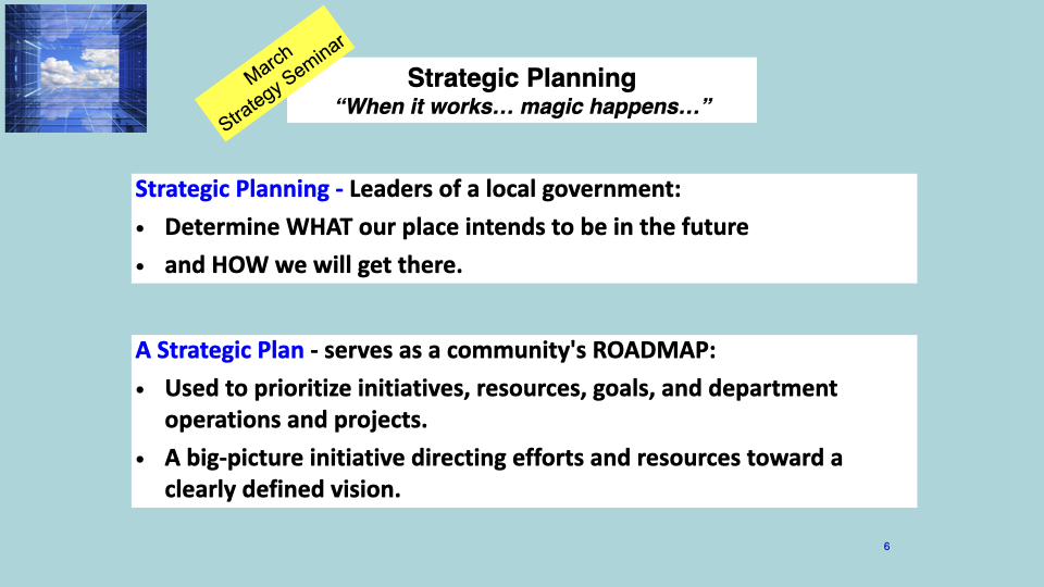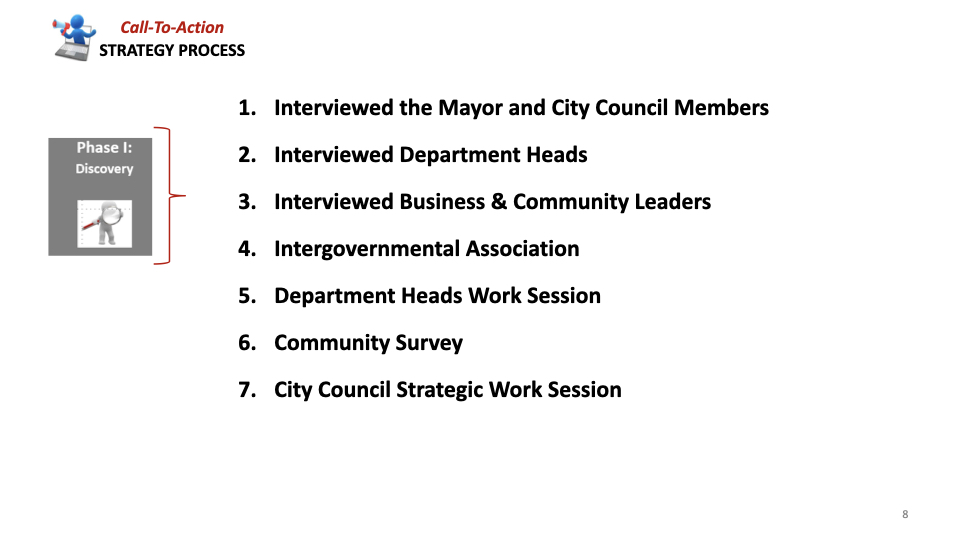 Bringing the plan to fruition came from a city-wide strategy seminar, interviews with the mayor and council, department heads, and business and community leaders.