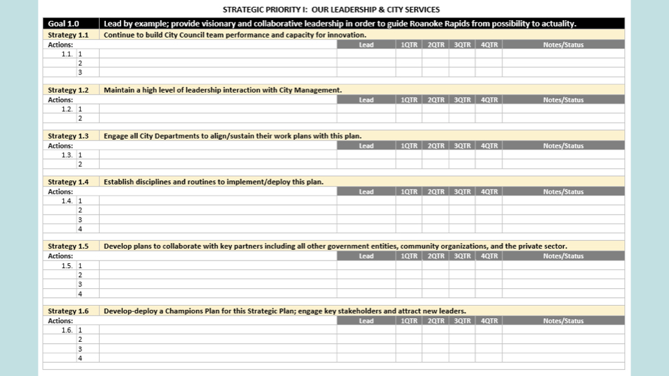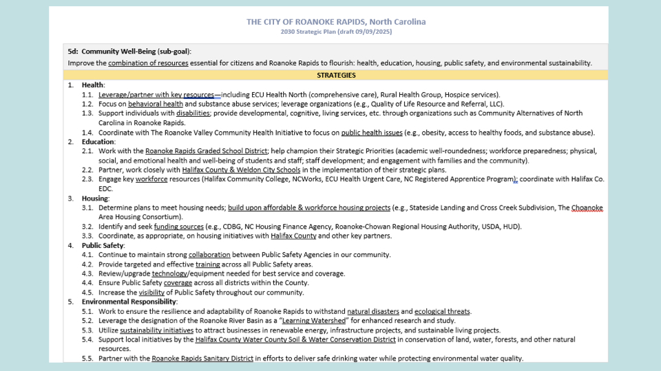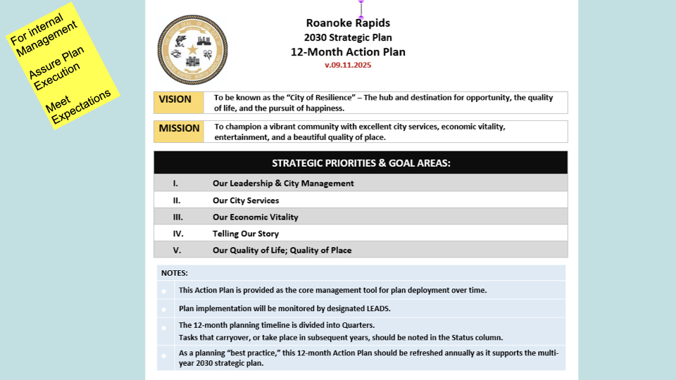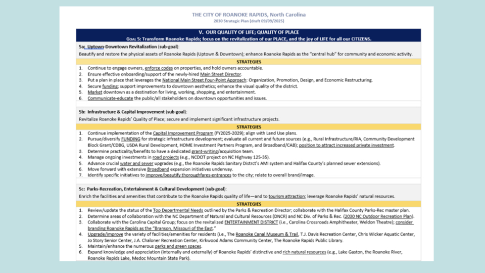 Roanoke Rapids City Council Tuesday adopted a strategic plan, a blueprint to guide growth and rejuvenation efforts through 2030.