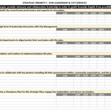 The plan addresses leadership and city management, city services, economic vitality, telling the city’s story, and quality of life and place.