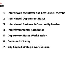 But, he said, “These strategies are the result of information we gathered from each of you as council members, the department heads, the other leaders we interviewed, and a lot of research.”
