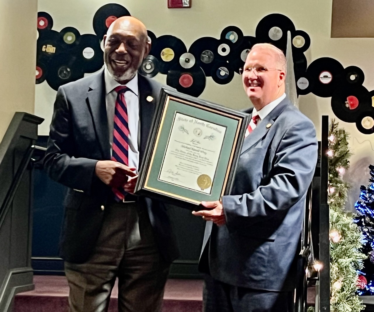 Bestowed by Governor Josh Stein, the award was formally presented by Representative Shelly Willingham of Rocky Mount, Wray’s longtime seatmate in the State House.