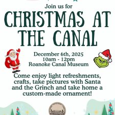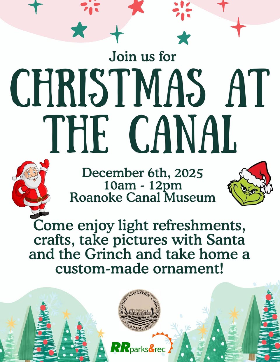 On December 6, Christmas on the Canal is scheduled from 10 a.m. to noon at the Roanoke Canal Museum.