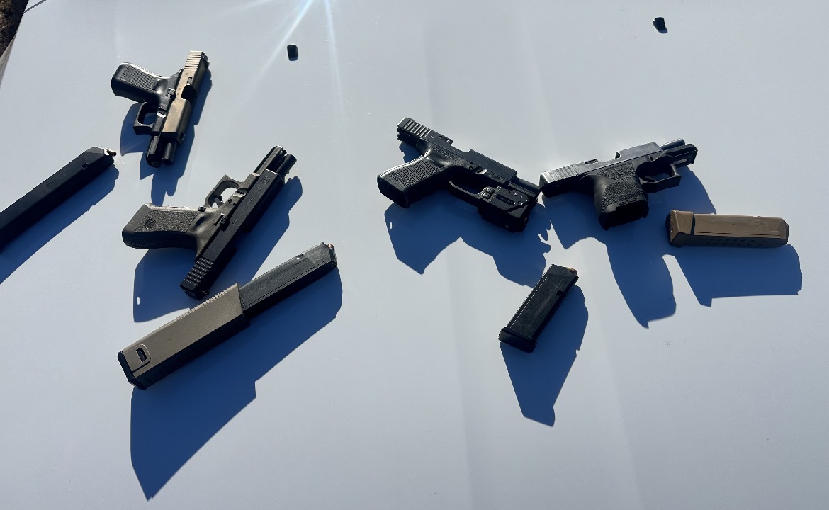 A check by Halifax County Emergency Communications confirmed that three of the guns had been reported stolen — two from Wilmington and one from Charlotte. The fourth firearm had its serial numbers removed.