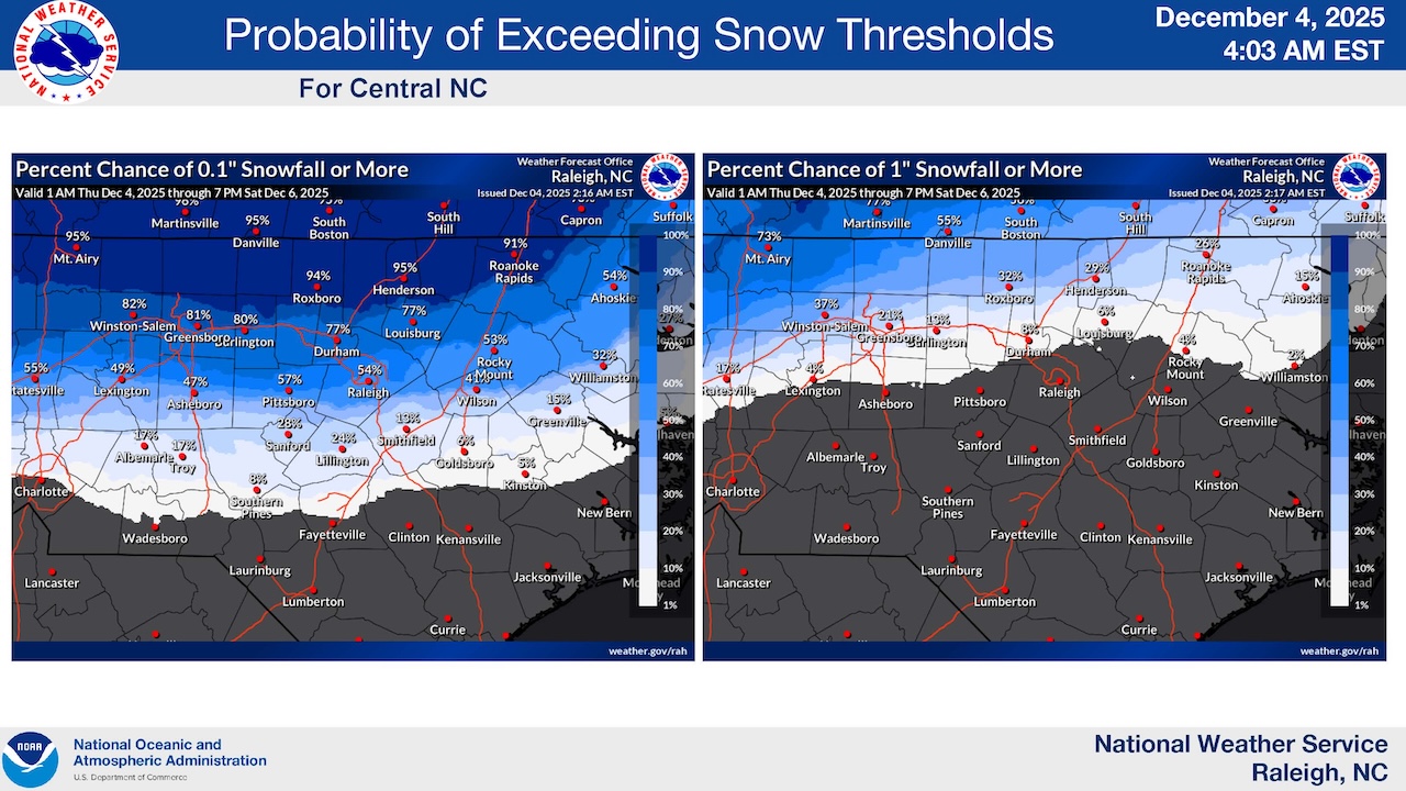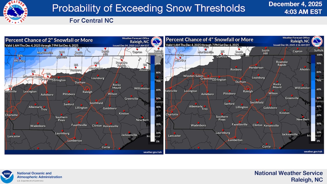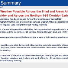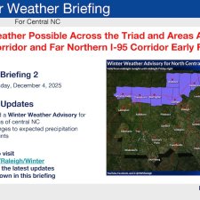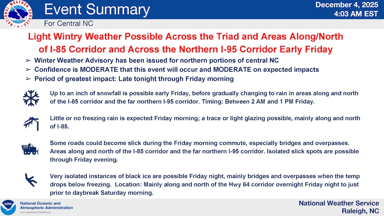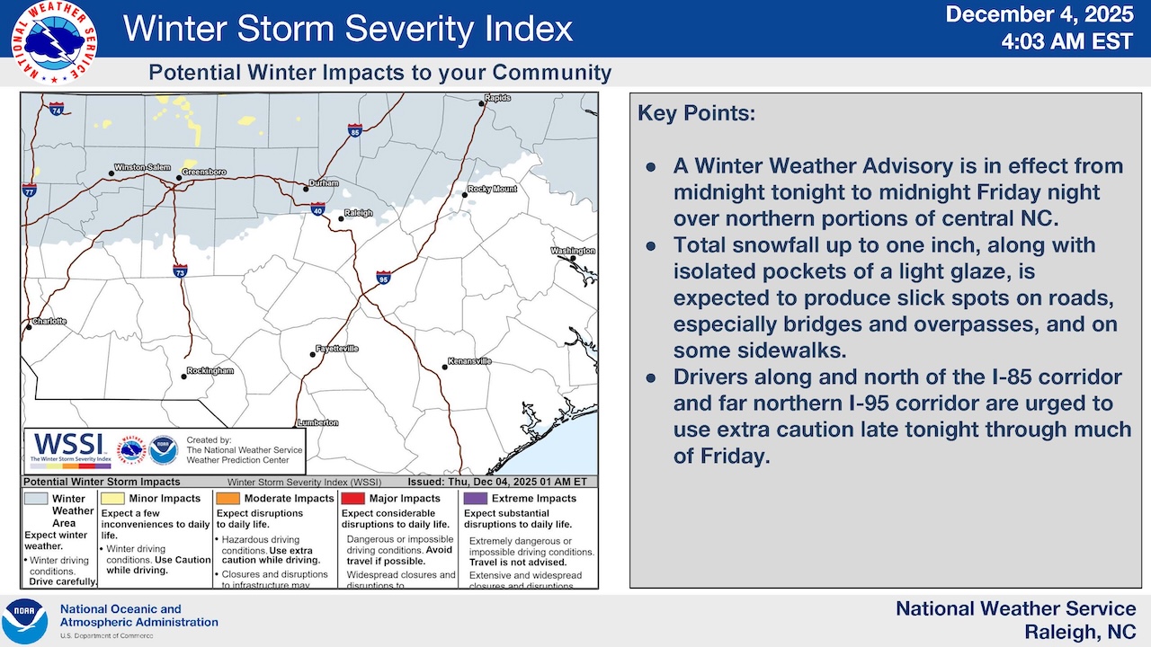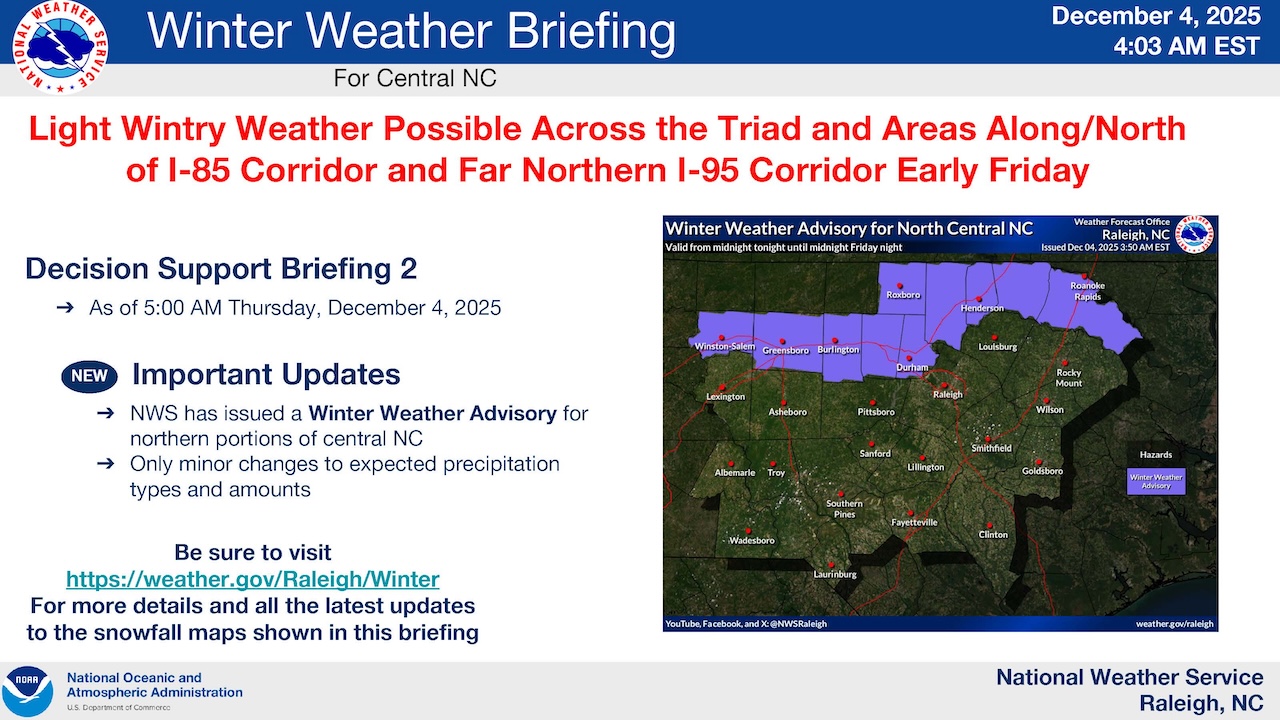 The National Weather Service in Raleigh has issued a winter weather advisory for the Roanoke Valley and northern central North Carolina, prompting warnings for commuters and urgent pleas from animal advocates to keep pets indoors.
