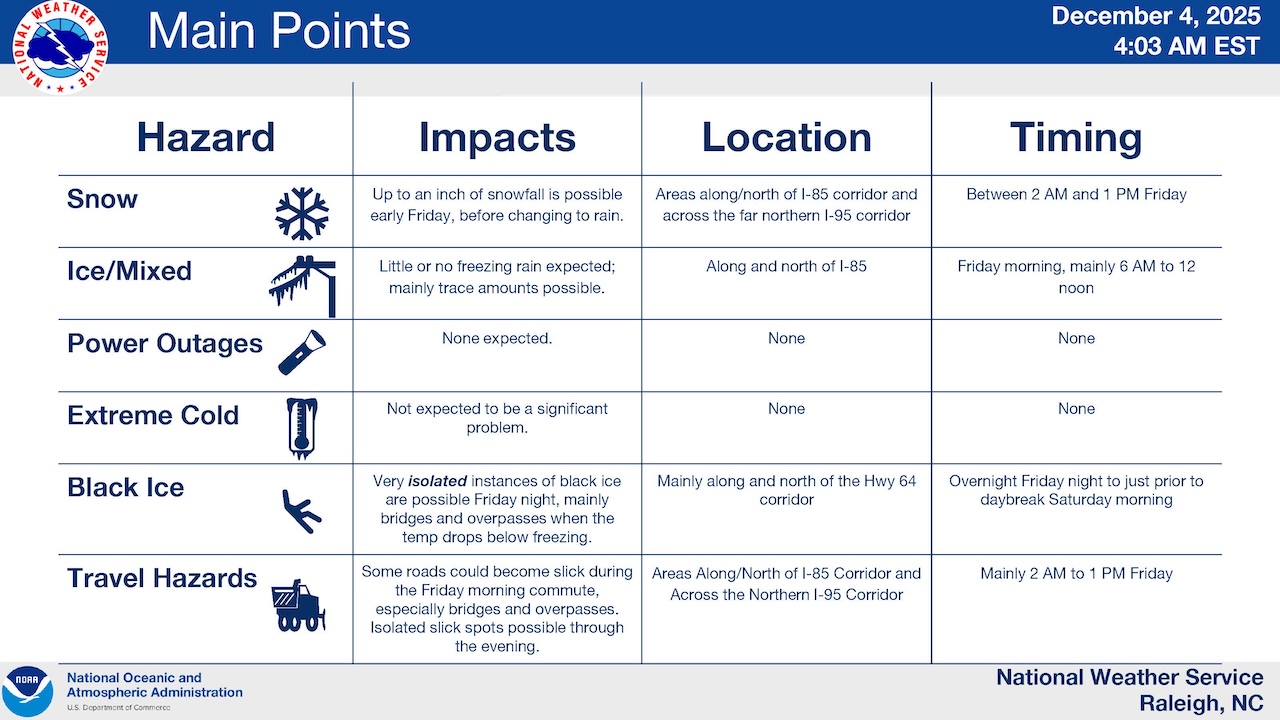 While widespread heavy snow is not expected, the timing of the system poses a risk for Friday morning travelers.