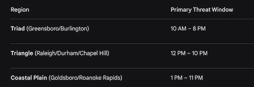 The National Weather Service in Raleigh has issued a critical weather briefing as a powerful storm system prepares to sweep across central North Carolina today.