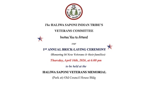 The Haliwa-Saponi Indian Tribe's first veterans memorial brick-laying ceremony will take place on Thursday evening at 6 p.m.