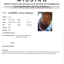 He was last seen Thursday morning at approximately 5:45 at 212-B Meherrin Lane in Emporia.
