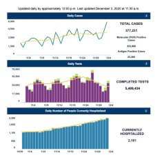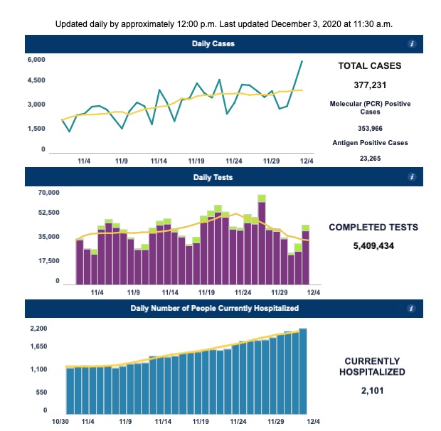 The trend line graphic of positive cases since March 25 was not available today but the health department said the trend continues to increase in the county, state and country.