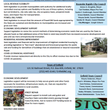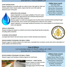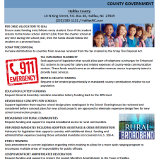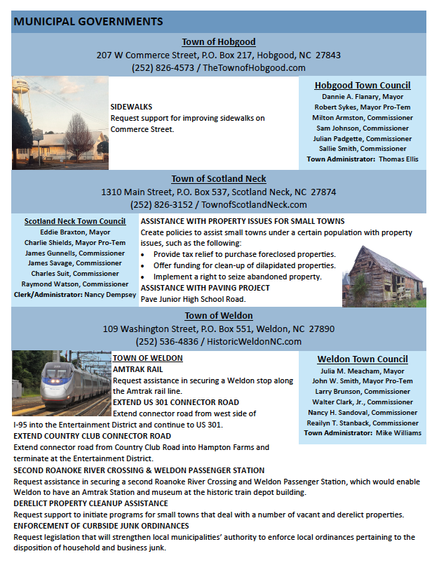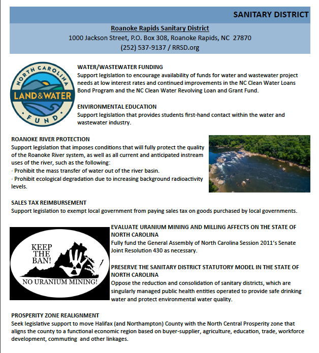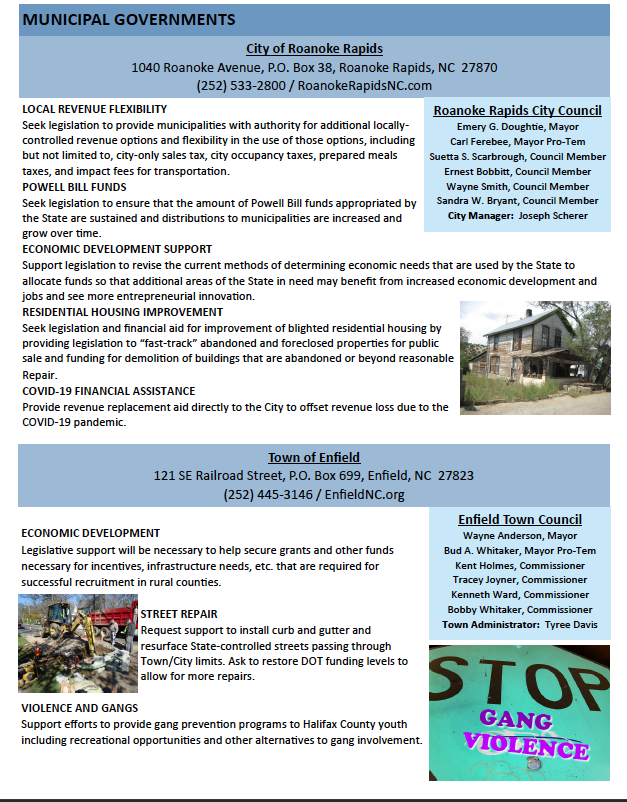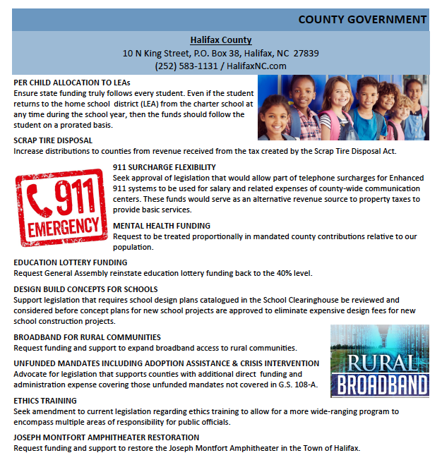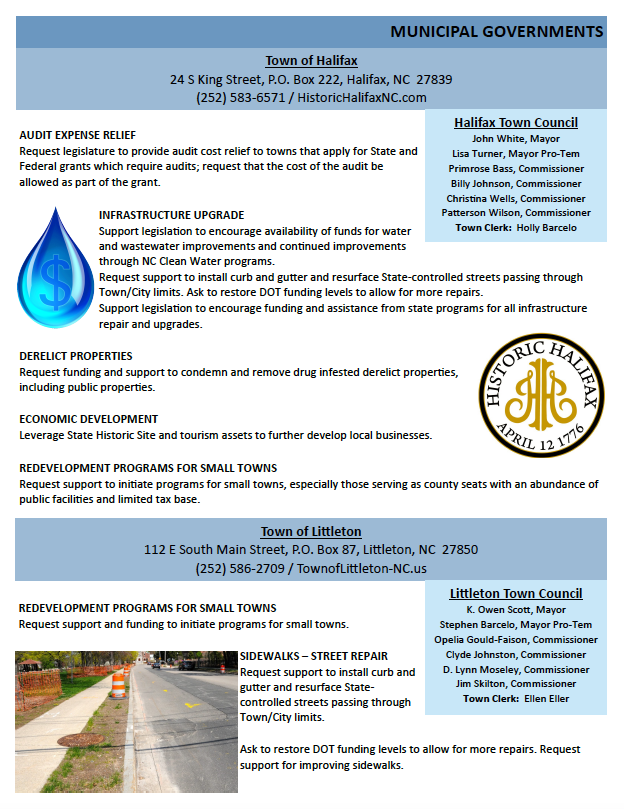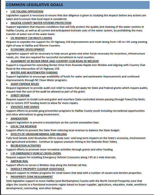 Many of the municipalities in Halifax County share common legislative goals, such as continued opposition to the tolling of Interstate 95 and county water system protection.