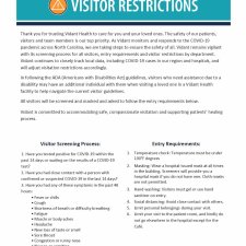 For the latest information on Vidant’s visitor restrictions, please visit this link