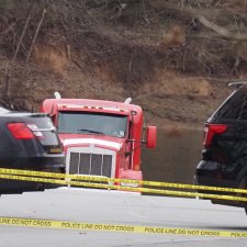 Between 2:30 and 2:45 this afternoon boats were ready to go into the waters of the river. The boats headed in a south to southeast position where the car was located, towed and placed on a rollback for further investigation.