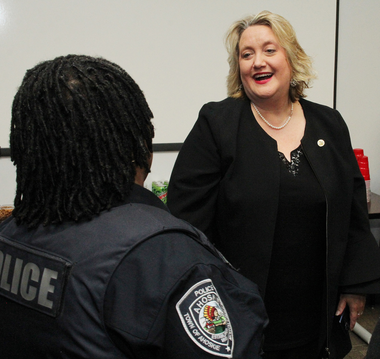 “I look forward to working with each of you,” Etheridge said, standing in front of a room full of town of Ahoskie employees gathered for her swearing-in ceremony. “I want to visit you where you work and learn more about what you do for the town.”