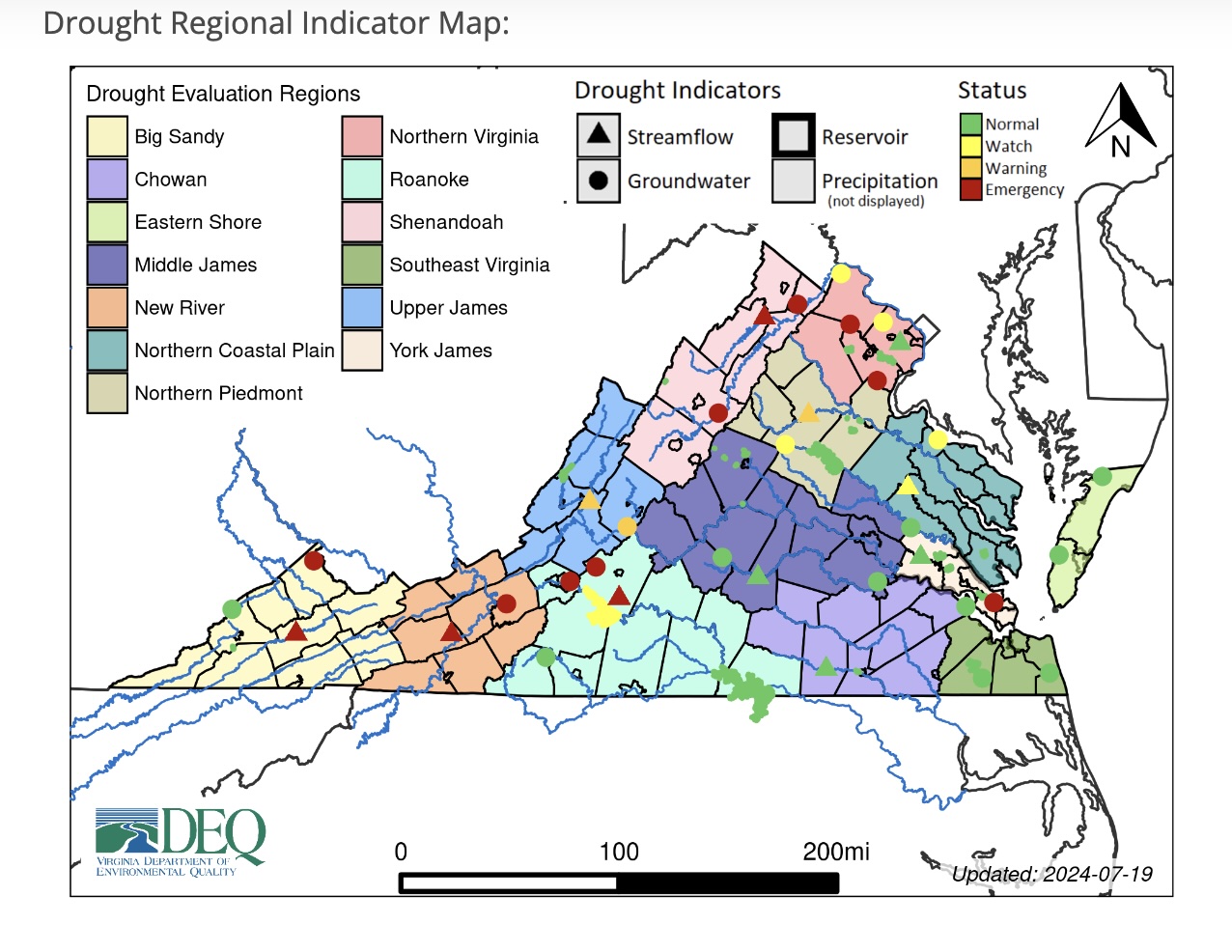 Several factors have contributed to the lifting of advisories, maintenance of drought watch advisories and the expansion of warning advisories in the affected regions, VDEQ said in an update this morning.