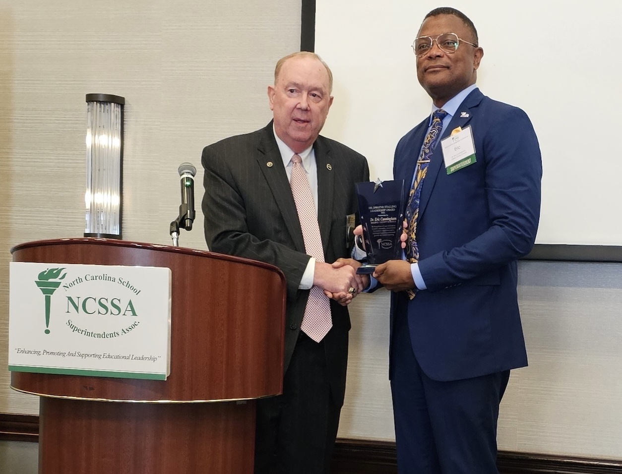 The North Carolina School Superintendents' Association selected Halifax County Schools Superintendent Eric Cunningham as the recipient of the Dr. Dwayne Stallings Leadership Award.