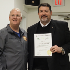 Wray said, “The state of North Carolina, Roy Cooper reposed in special confidence, integrity, learning and zeal do present Dr. Christopher Shane Guyant and confer the Order of the Long Leaf Pine with the rank of ambassador extraordinaire.”
