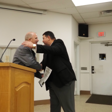 Former Roanoke Rapids police Chief Shane Guyant received his badge and service weapon during Tuesday’s city council meeting and also received one of the state’s highest honors — the Order of the Long Leaf Pine.