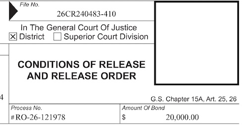 Again, see the lead photo for what I encountered when I looked at the warrant and the conditions of release document, which also contained no photo.