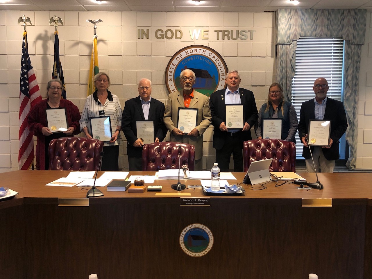 The Governor’s Volunteer Service Award recipients were presented with certificates and pins during the Halifax County Board of Commissioners meeting Monday.