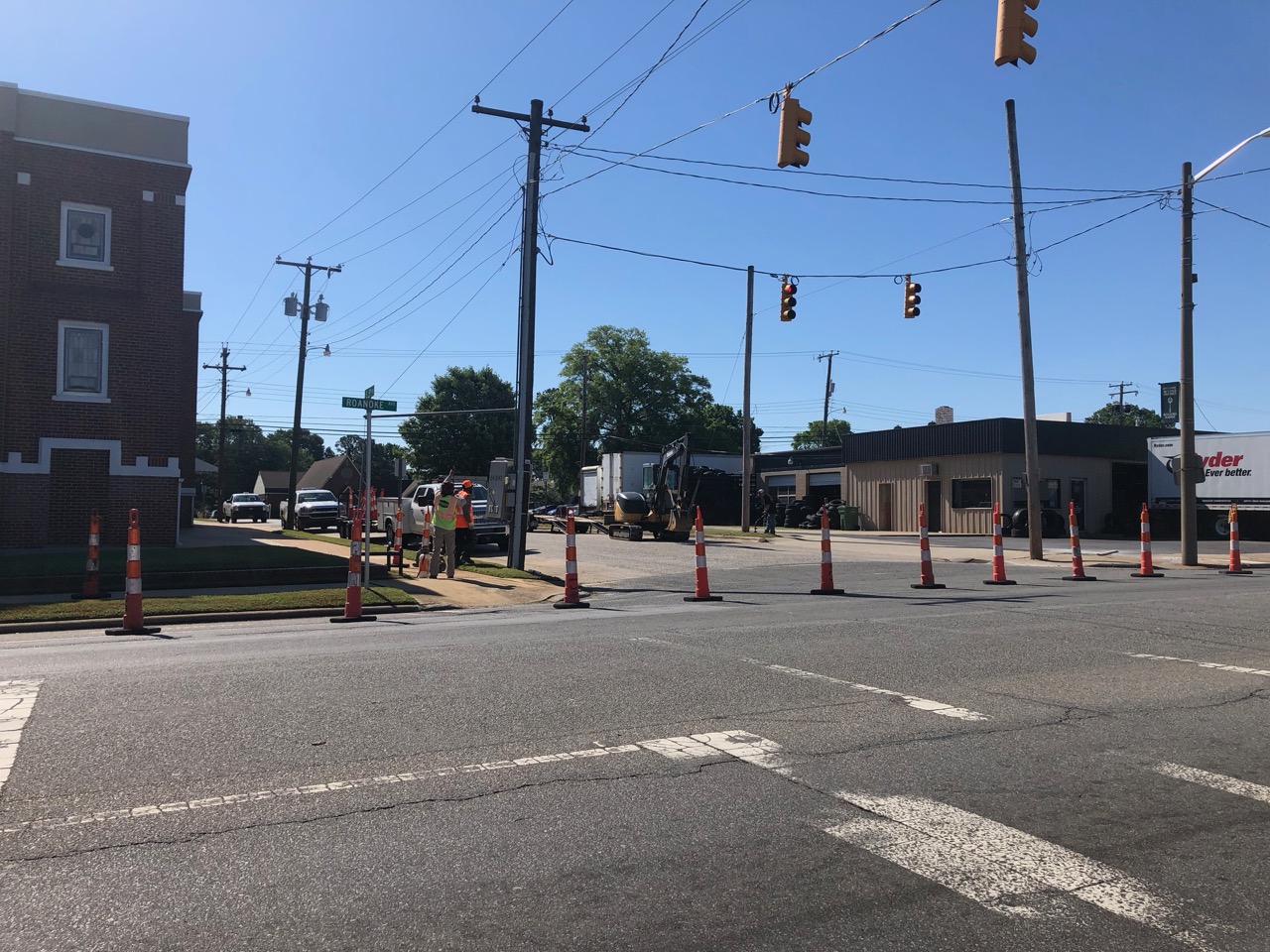 Contractors continue to work on making selected intersections in the Roanoke Rapids business district Americans with Disabilities Act compliant.