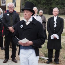 Carl Burke, site manager for Historic Halifax, welcomed the general in a portrayal of Major Allen Jones Davie, son of William R. Davie.