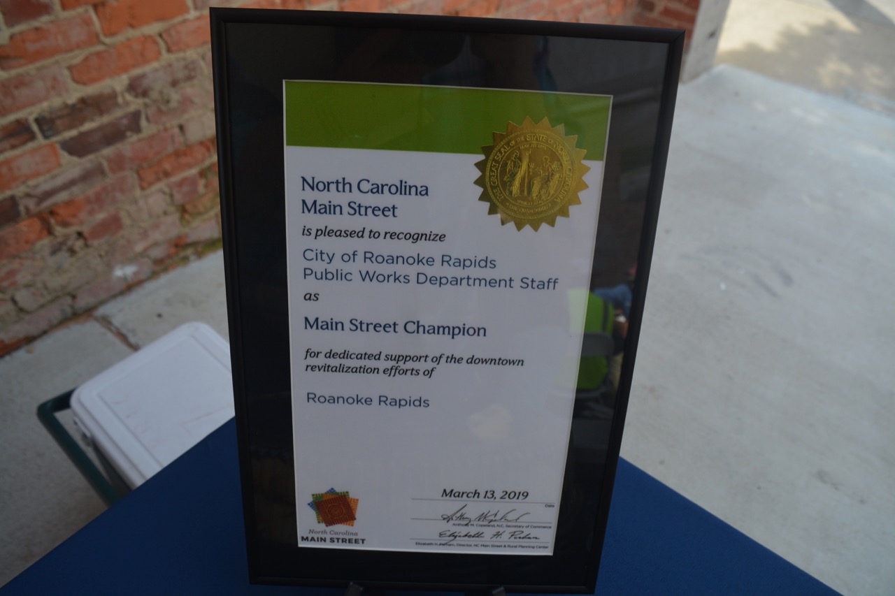 The Main Street Roanoke Rapids Board treated the city’s public works department to dinner Thursday evening as a way to say thanks for its work on the 1026 green space and its recent honor as a Main Street Champion.