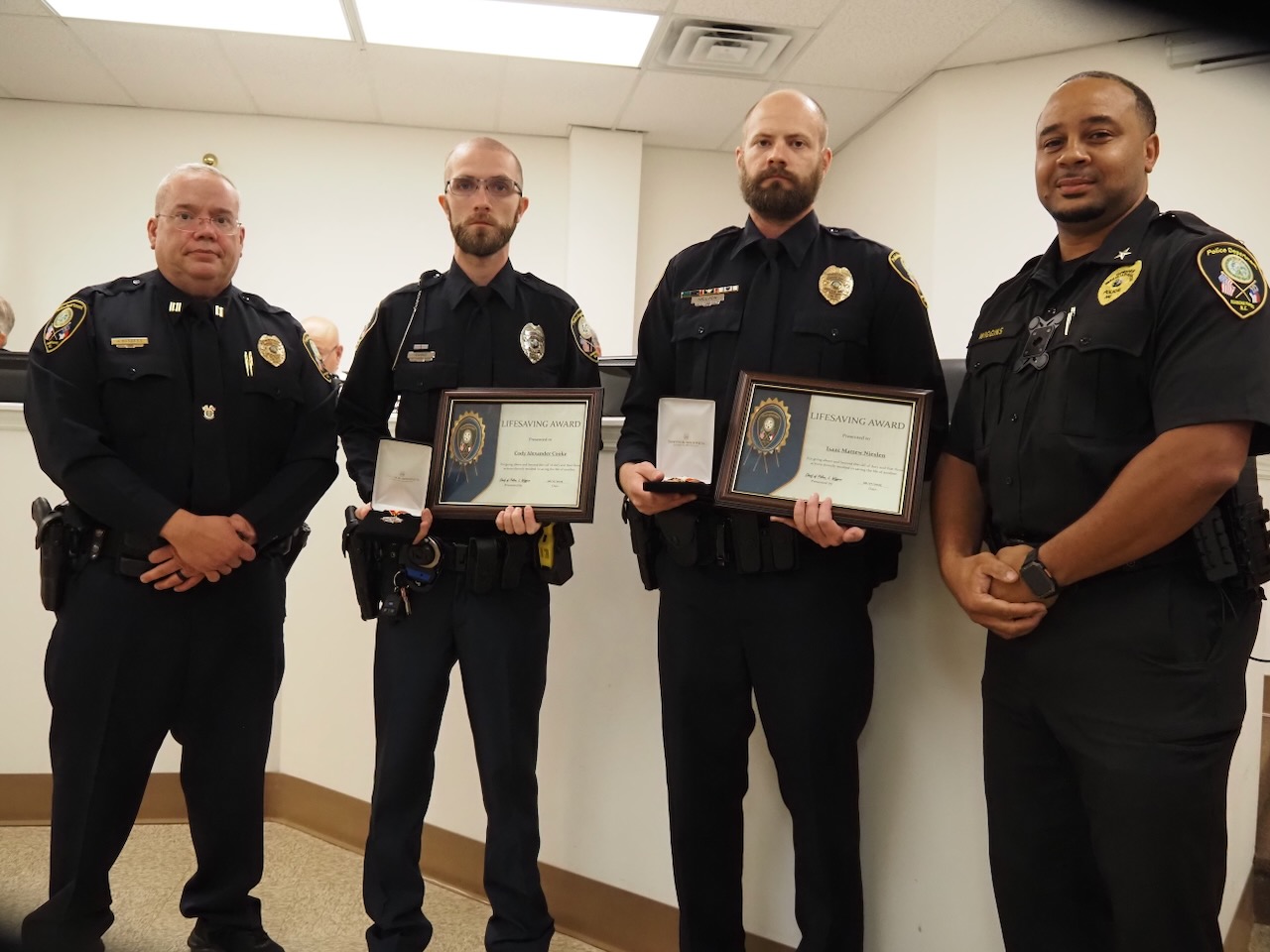 Police Chief Lawrence Wiggins read the citation to the council. “For acts beyond normal police performance that contributed to the meaningful outcome of the preservation of life, Sergeant Neilsen and Officer Cody Cooke are hereby awarded the lifesaving award.”