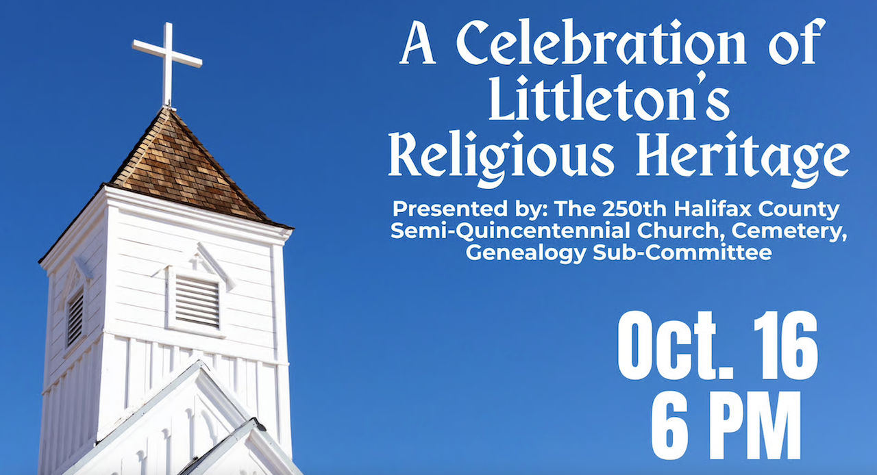 Approximately 12 churches from Littleton and surrounding areas will come together to share their histories at the event presented by the 250th Halifax County Semi-Quincentennial Church, Cemetery, and Genealogy Sub-Committee.