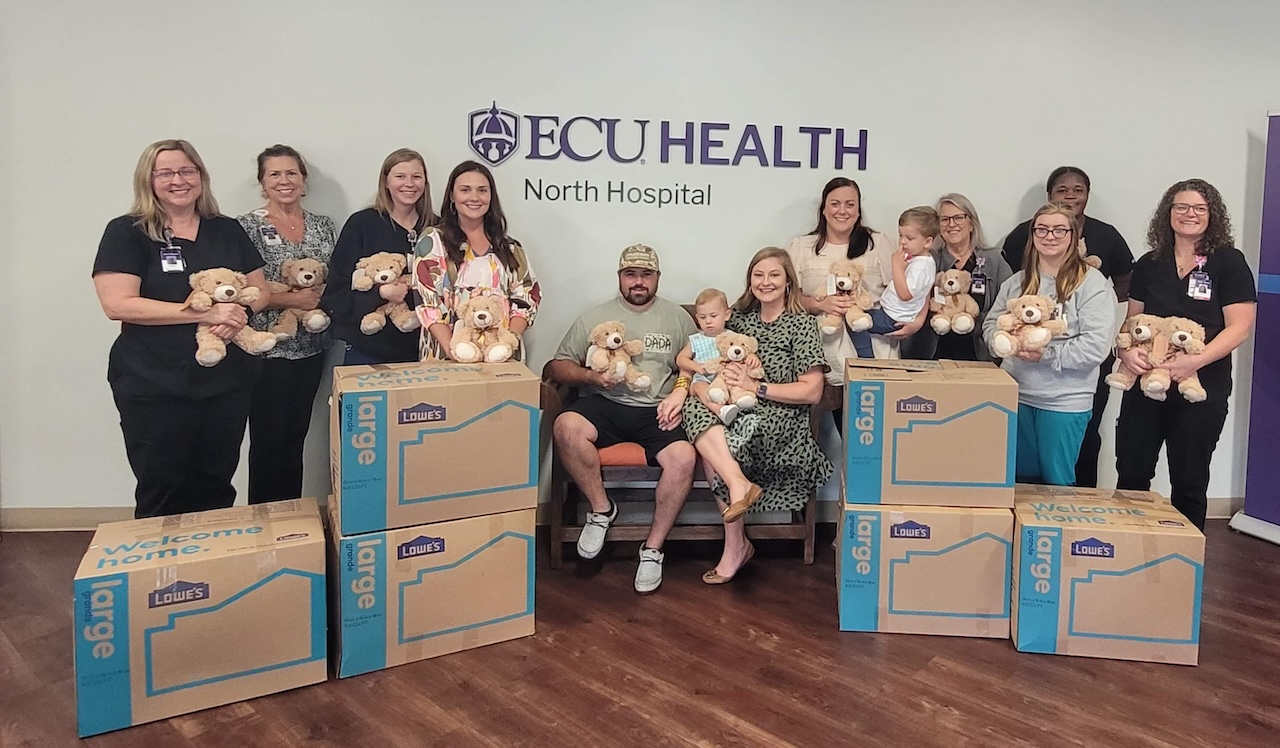 This year the Flythes, who now have a “new little blessing” named Drake Thomas Flythe, donated 922 bears to ECU Health North, where Meghan works as a nurse. “This year was something different,” she said. “I wanted to make a Magnus bear to give to children who were in the hospital. We see a large number of children and we wanted them to have something to comfort them through their hospital stay.”