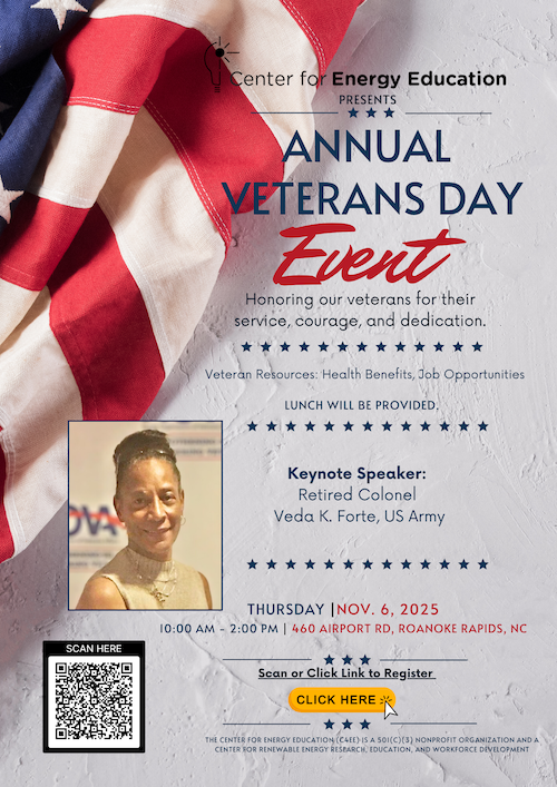 From 10 a.m. to 2 p.m., C4EE welcomes veterans, elected officials, community leaders and the public to a free Veterans Day program on November 6 at 460 Airport Road in Roanoke Rapids, to recognize the roles of these individuals for their service to the country.