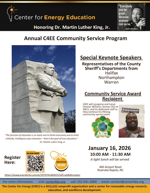 The center will hold a celebration at its campus at 460 Airport Road in Roanoke Rapids on January 16 from 10 a.m. to 11:30 a.m. This year’s program will highlight perspectives of community service through the lens of law enforcement and will feature representatives from Halifax, Northampton, and Warren counties.
