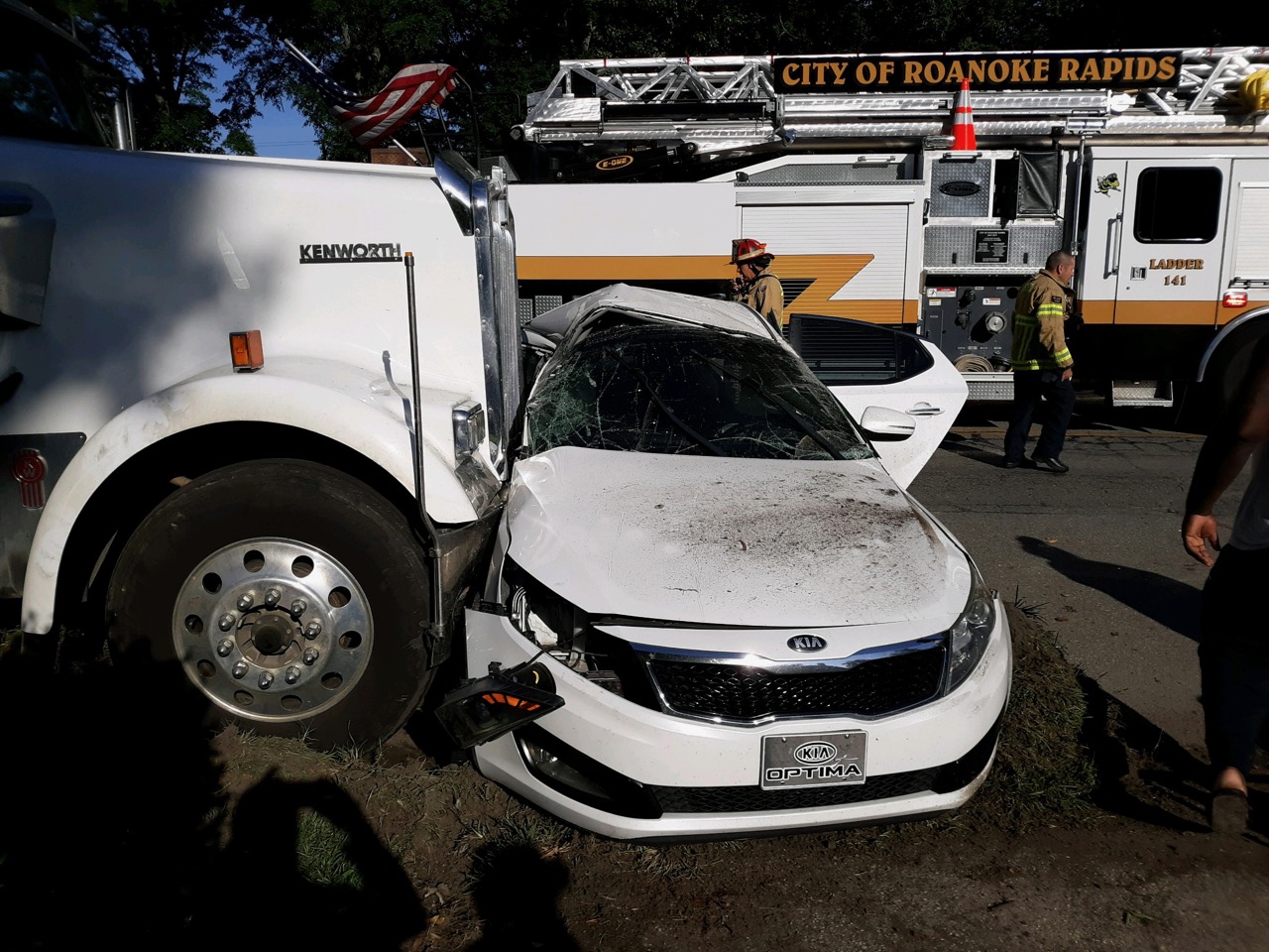 The crash at Fifth and the avenue involved a tractor-trailer striking a car. The truck driver was cited for running a red light.