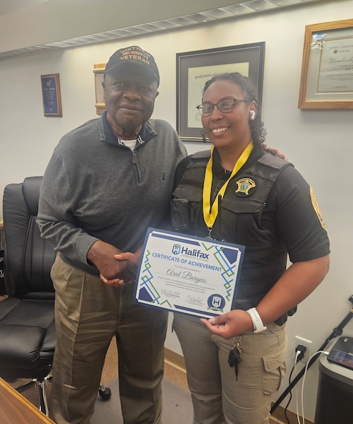 The certificate honored Burgess for her academic performance during her fall semester at Halifax Community College and her placement on the dean’s list.