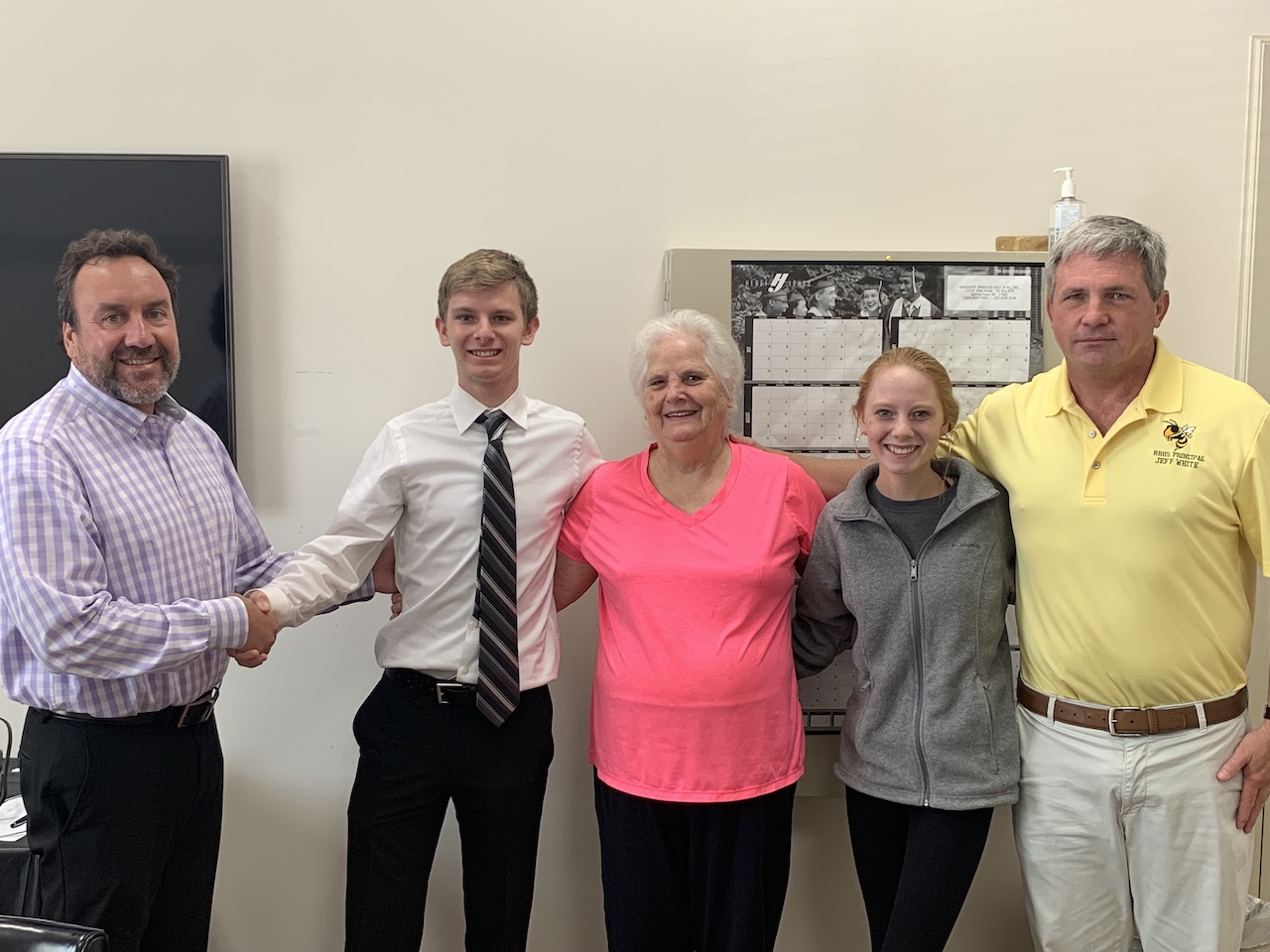 Assistant Superintendent Larry Catalano surprised the Roanoke Rapids High School senior with the scholarship letter this morning. Thompson was surrounded by his family during the announcement.