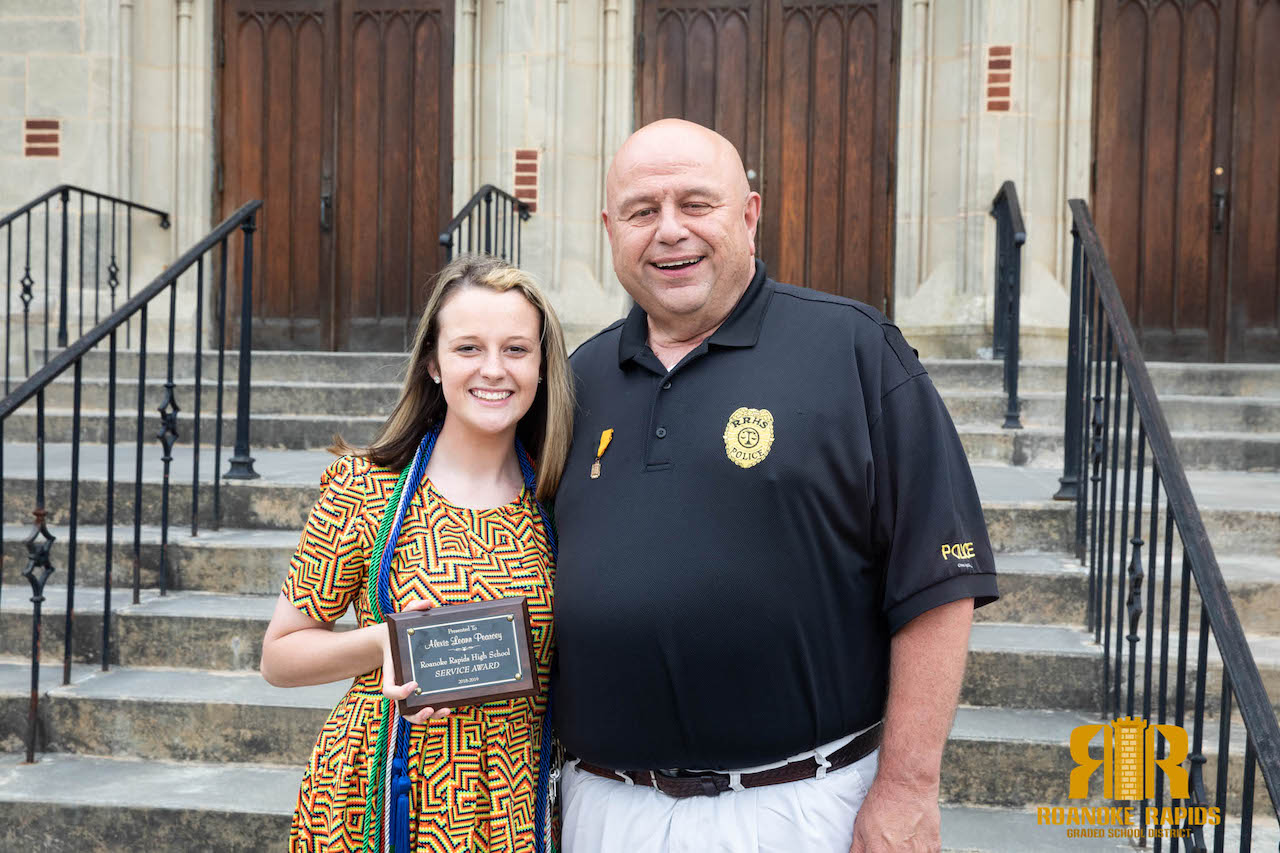School Resource Officer Rex Stainback praised Pearcey’s volunteerism as the school. “She’s done it all here. She’s stayed after events to clean up, helped with our exceptional children’s program, and worked the concession stand at sports events her entire high school career. She’s a true servant.”