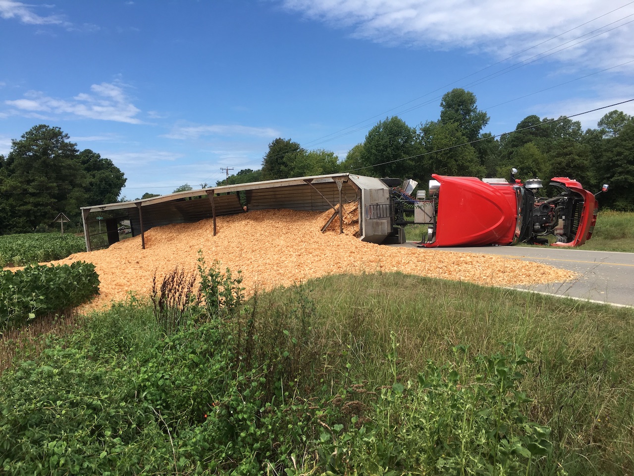 Blount said the tractor-trailer lost more than half its load of wood chips.
