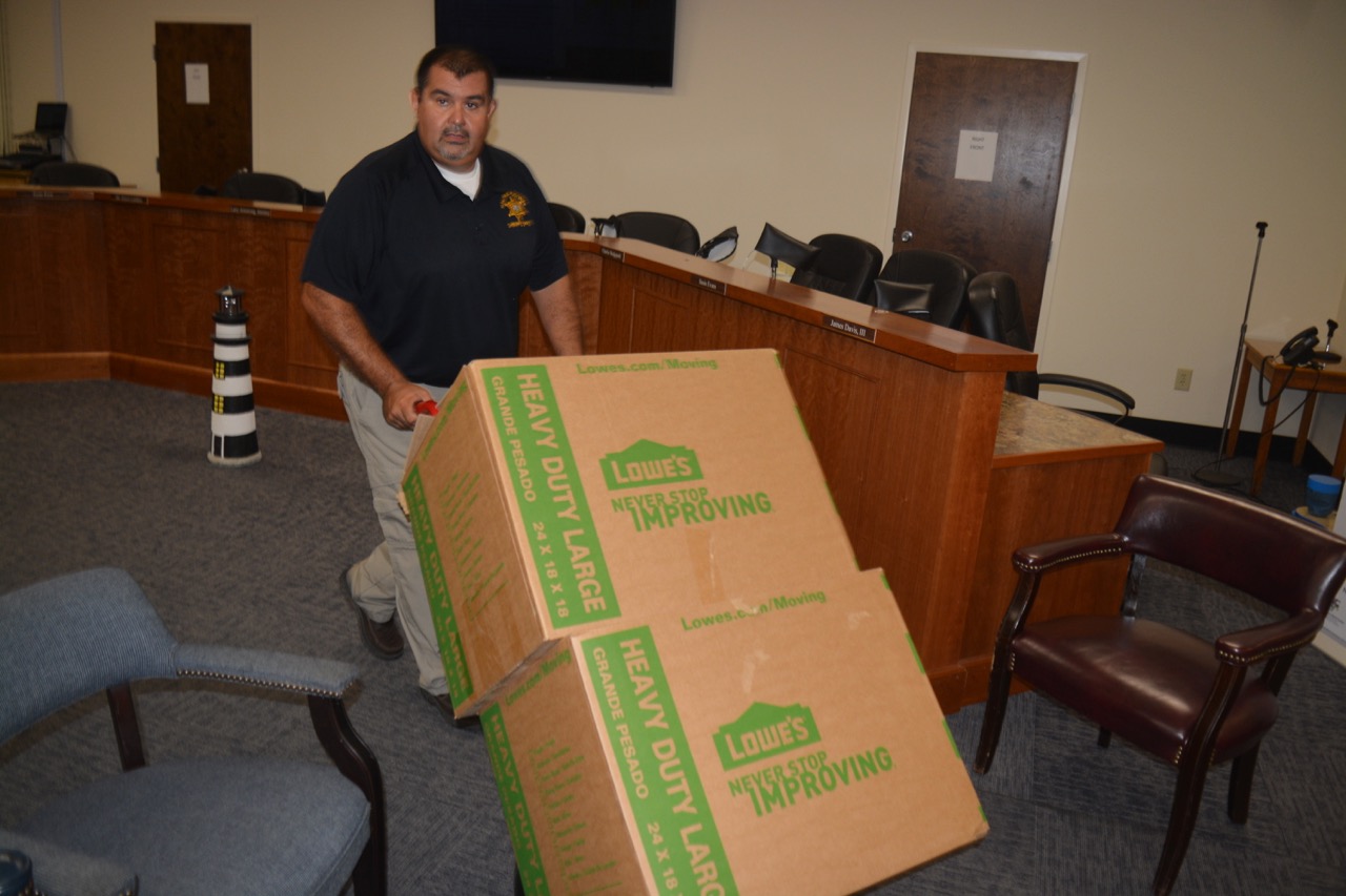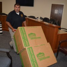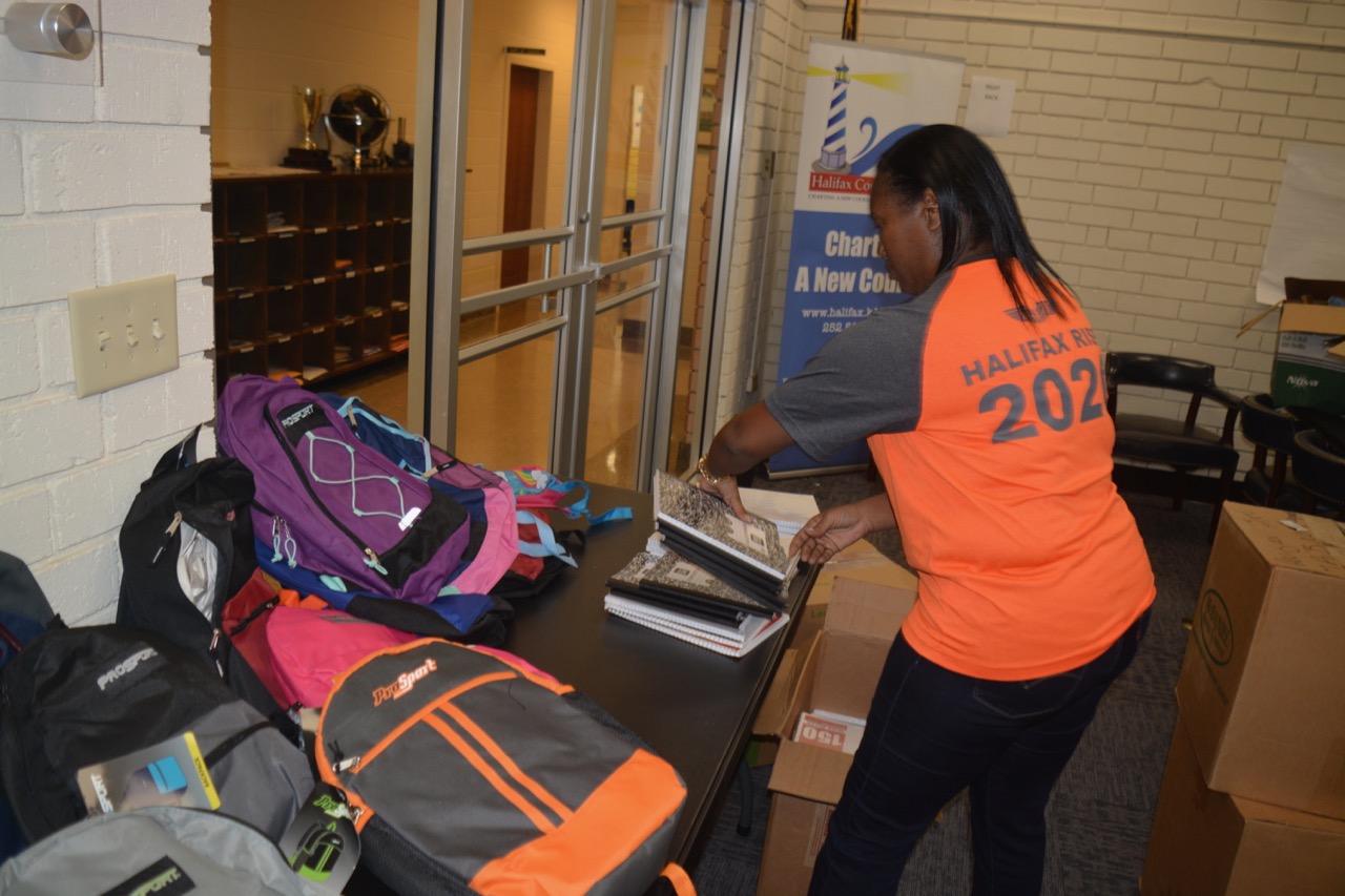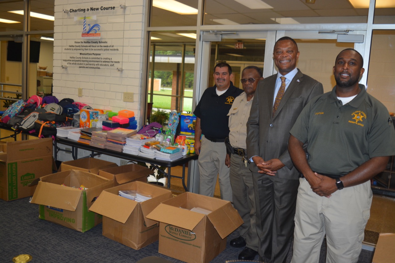 Halifax County Schools Superintendent Eric Cunningham was overjoyed with the gifts brought to the central office today — school supplies from a drive sponsored by the county’s sheriff’s office.