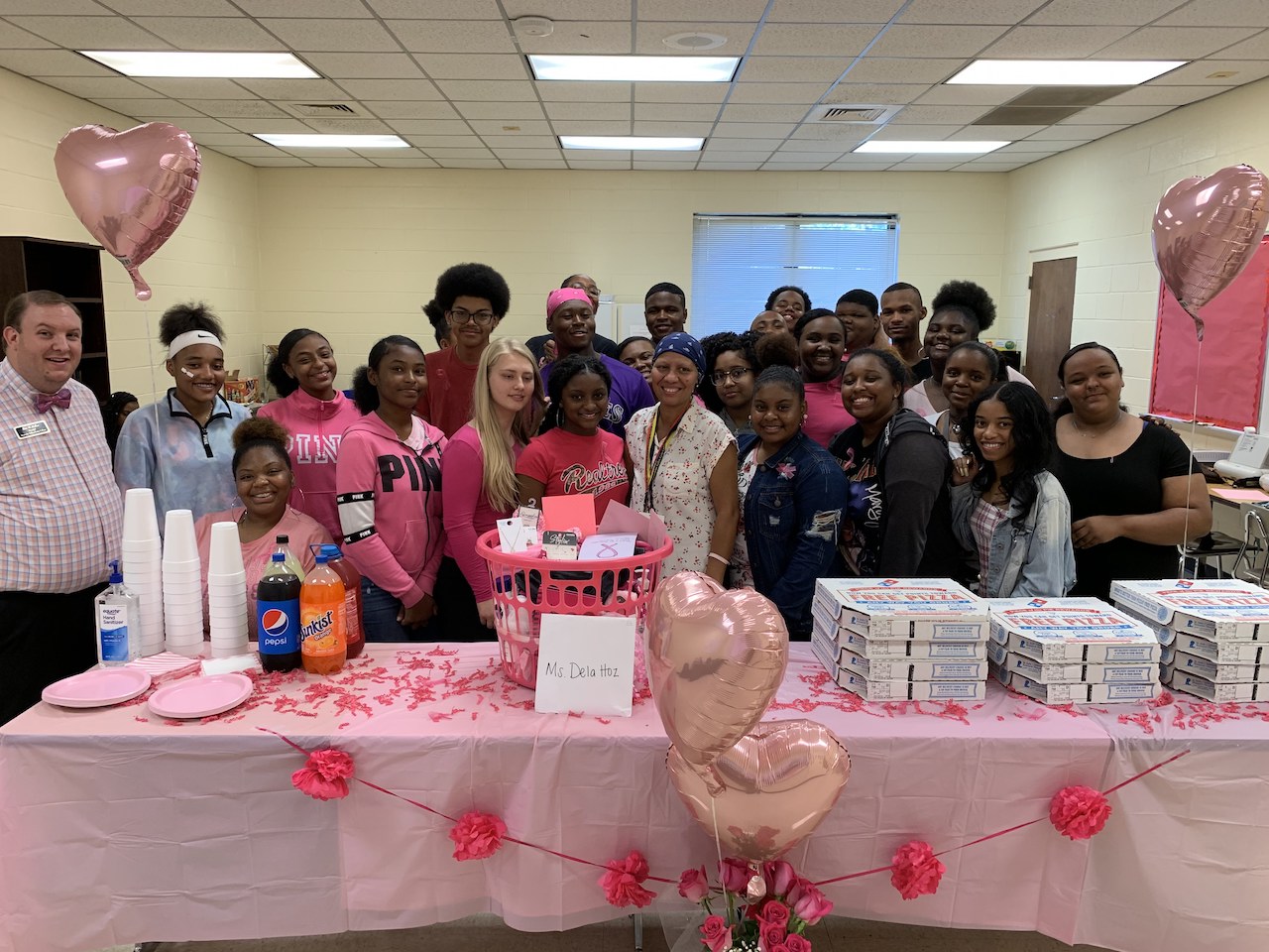 Roanoke Valley Early College juniors Thursday celebrated their Spanish teacher, Liliani Delahoz, on her last day of radiation and chemotherapy,