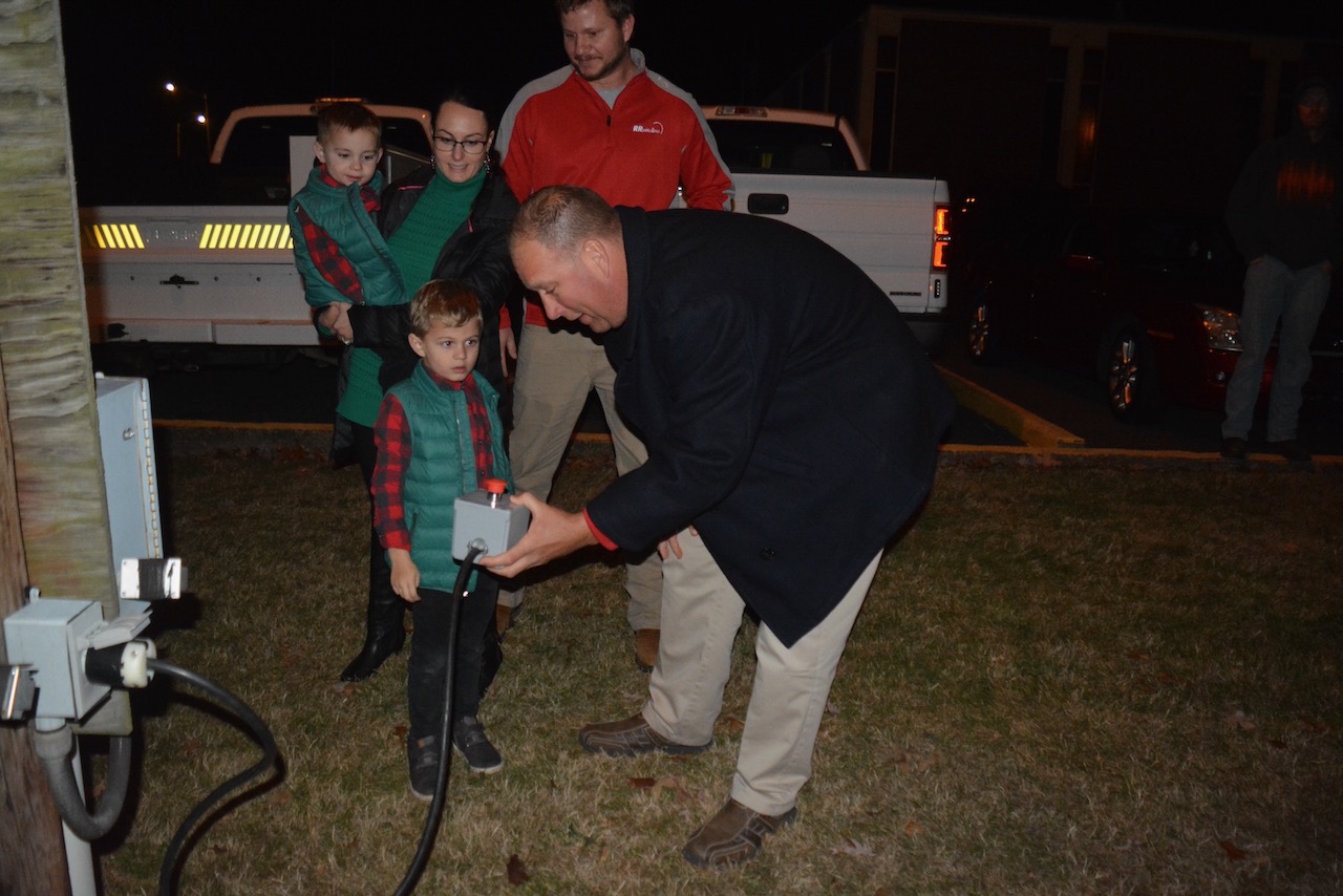 Wayland and William Newsome, sons of Canal Museum Cultural Resources Leader Ryan Newsome had the honors of pushing the switch to light the tree.