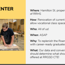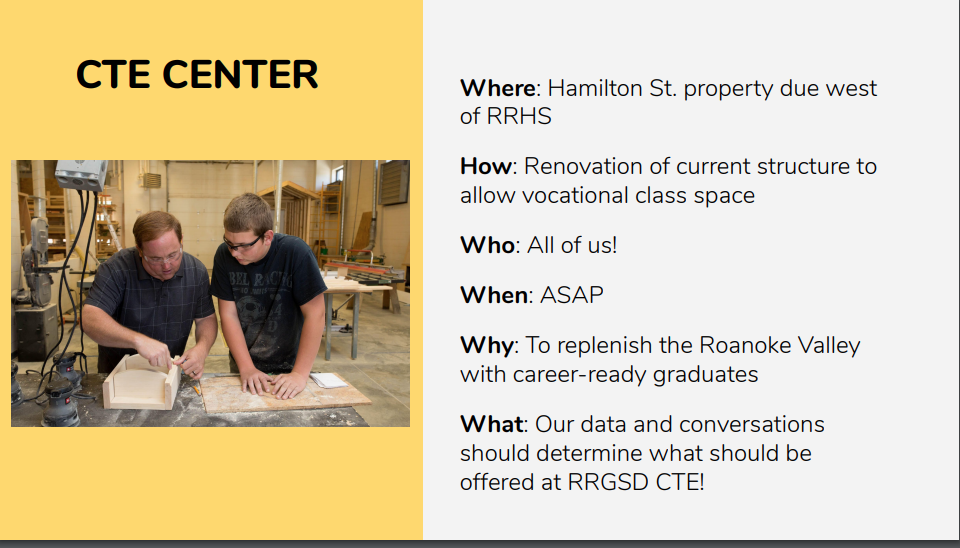 To bring the plans to fruition the school system is not ruling out seeking private investment for the project. “I would hope there are people in high places who have very strong businesses that would see the value of this CTE center and maybe they would like to help.”