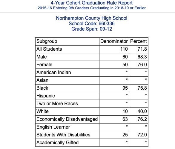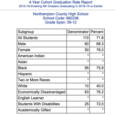 The report also found Northampton County Schools was one of five in the state with the highest high school dropout rates.