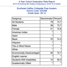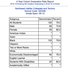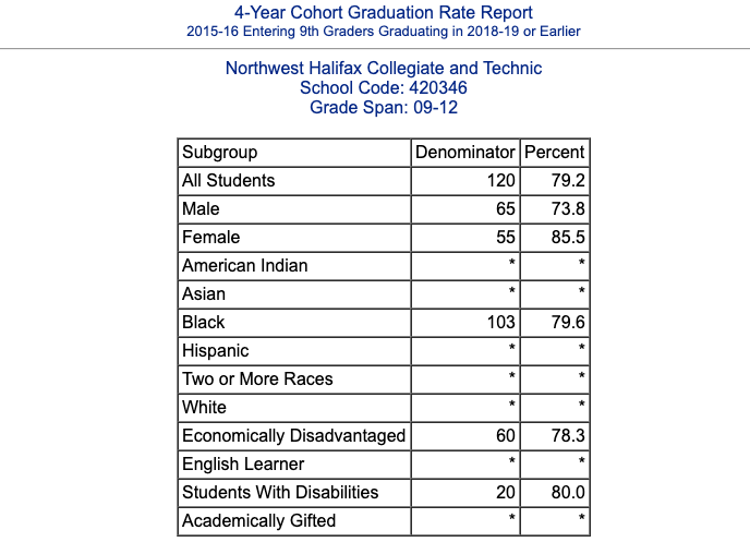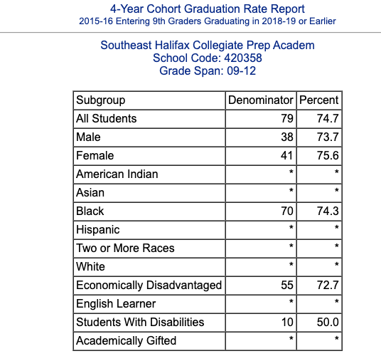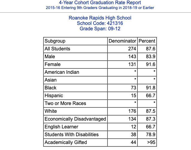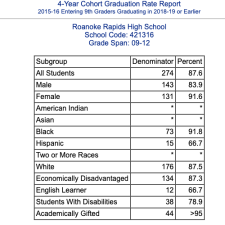 In Roanoke Rapids, the school system said in a statement, its graded school district showed a significant increase in the graduation rate and an overall decrease in the number of students dropping out of school according to the Consolidated Data Report.
