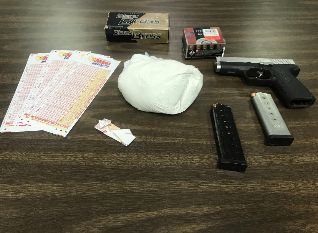 Approximately 392 grams of heroin was seized along with a handgun, a box of bullets, lottery tickets and a lottery ticket in which additional heroin was found.