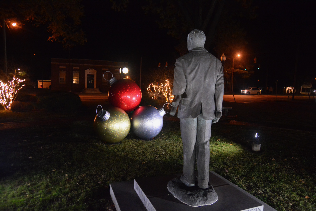 The Christmas tree at Centennial Park comes with LED lights and a 4-foot star. There will be a 6-foot tall standing ornament with other Christmas elements and lights while grapevine ornamental balls will hang on the set of oak trees at the park. There will be lights and lasers accompanied by Christmas music.