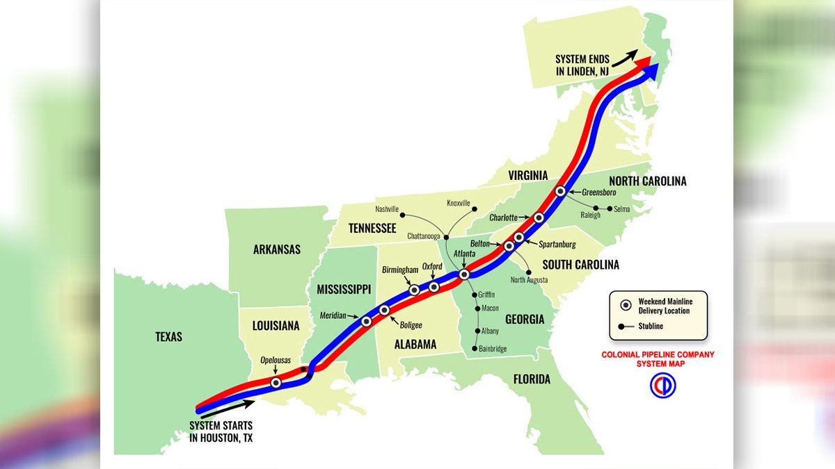 The Associated Press reported Monday the pipeline is operated by Georgia-based Colonial Pipeline and carries gasoline and other fuel from Texas to the Northeast. It delivers roughly 45 percent of fuel consumed on the East Coast, according to the company.