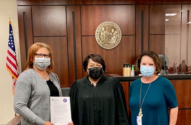 Queen Silver of Roanoke Rapids was sworn in as a Guardian ad Litem Child Advocate on October 13 by Chief District Court Judge Brenda G. Branch.
