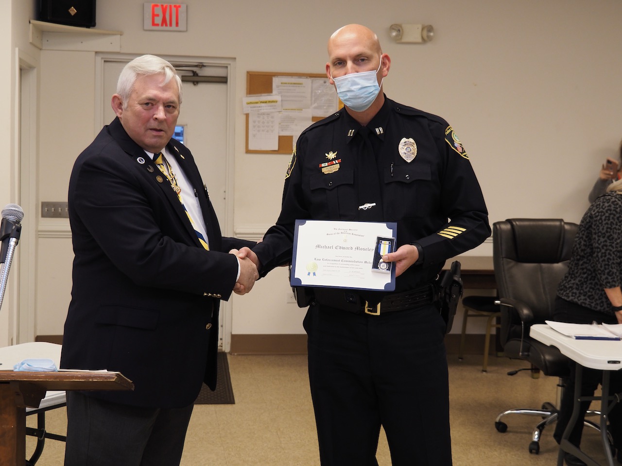 Chapter President Ken Wilson presented the Law Enforcement Commendation Medal to Captain Michael E. Moseley.