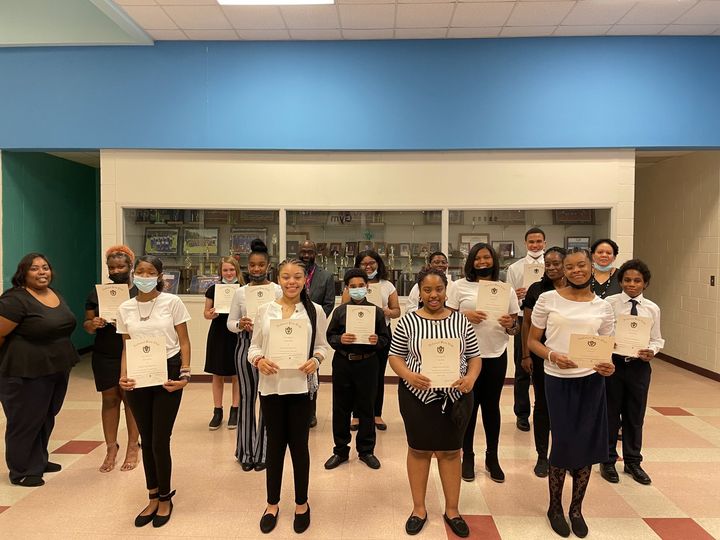 The students inducted are: Antionio Hawkins, Shamya Tabron, A'Nyia Brown, Shaz'yre Daniels, Cha'Kiyah Lynch, Chassidy Daniels, Jah'Niya Bell, Travis Shoulars, Brandon Lee, Jeffery Mills, Ja'Kalyn Knight, Crystal Vaughan, Errin Wilson, and Kamyiah Stallings.